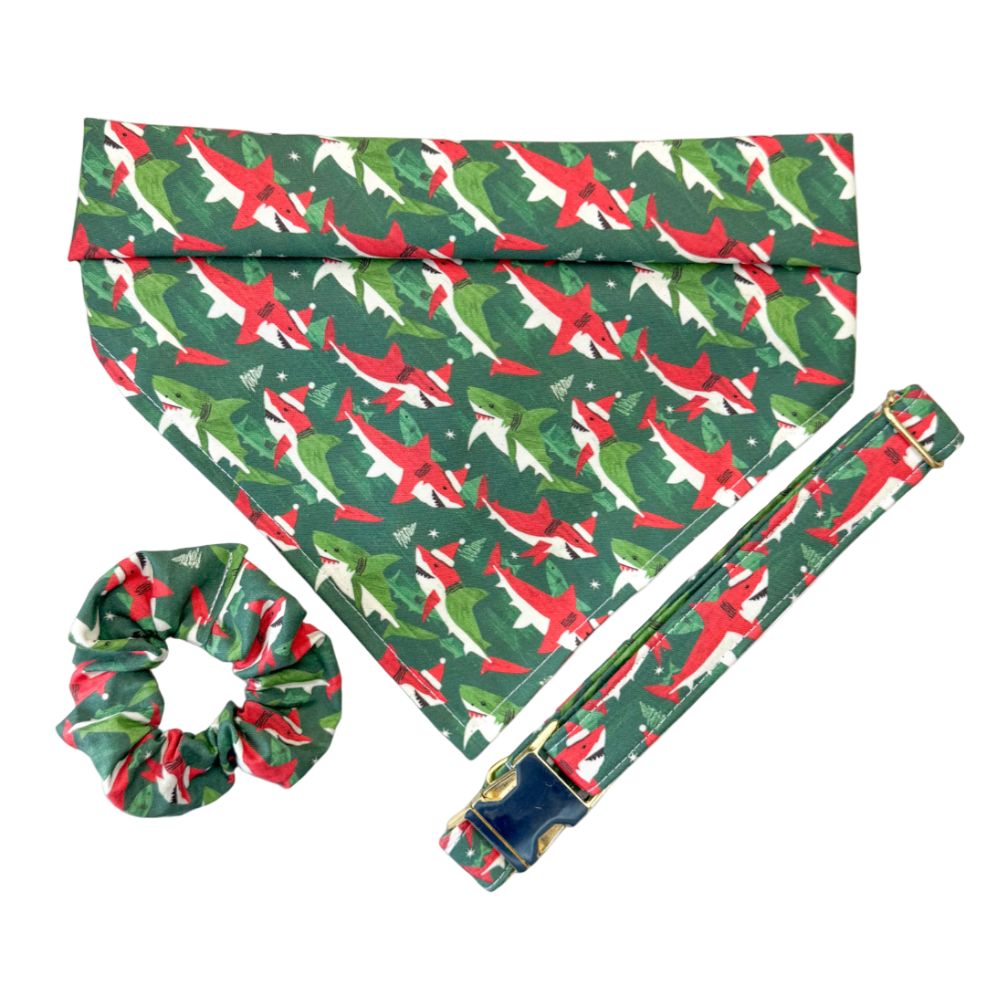Sharky Claus Bandana - XS (4-10") / No Add Ons is backordered and will ship as soon as it is back in stock.