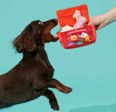 Your pup will love running wild with Animal Squeaker Snacks, a multi-part toy featuring three squeaky cookies in a crazy crinkle box. Whenever the zoo is empty, hide some treats inside for a post-play feeding frenzy! Special Features: - Hide treats inside the box for a tasty way to play. Materials: Polyester, Polyfill